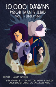 Jim Wylder’s 10,000 Dawns universe has been growing rapidly since its initial novel in 2016. In 2018, a massive anthology in the series (funded partially via Kickstarter) was published, Poor Man’s Iliad, Vol. 1: Liberation. Butler has two short stories in this anthology, Unpleasant Realities and The Road to Hell is Paved with Legislation.