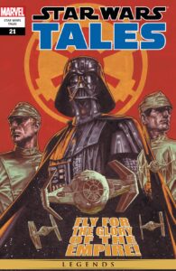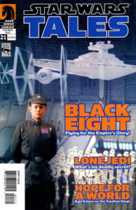 (Left to right, to to bottom: Star Wars Tales #21 art cover version, “photo” cover version, Star Wars Tales, Vol. 6 – all from Dark Horse Comics, Hasbro comic pack with Dark Horse Comics reissue of single story from Star Wars Tales #21, Marvel digital reissue of Star Wars Tales #21, Marvel digital reissue of Star Wars Tales, Vol. 6, Star Wars: The New Republic Epic Collection, Vol. 8)